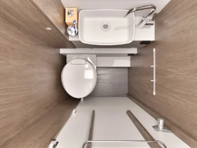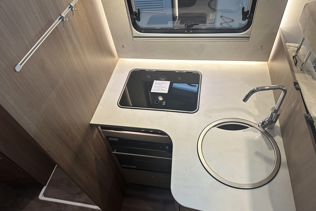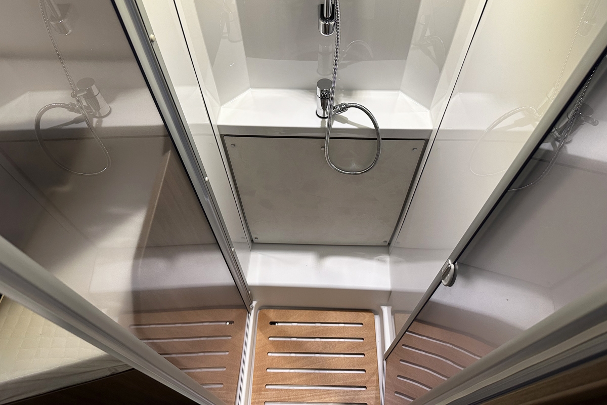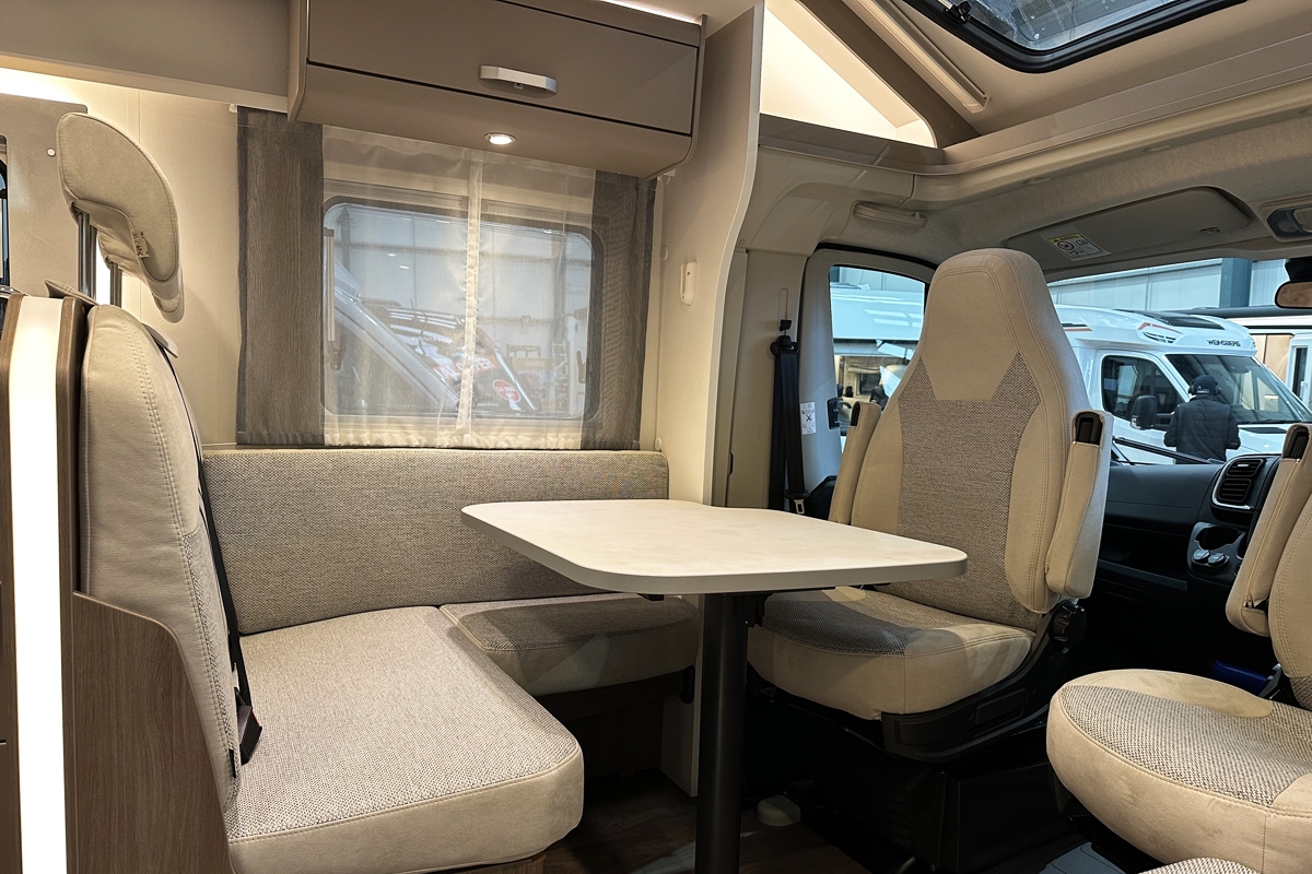 - Suur katuseluuk (tõstke ja kallutage) 70 cm x 50 cm koos sääsevõrgu- ja pimenduskardinaga kabiini kohal